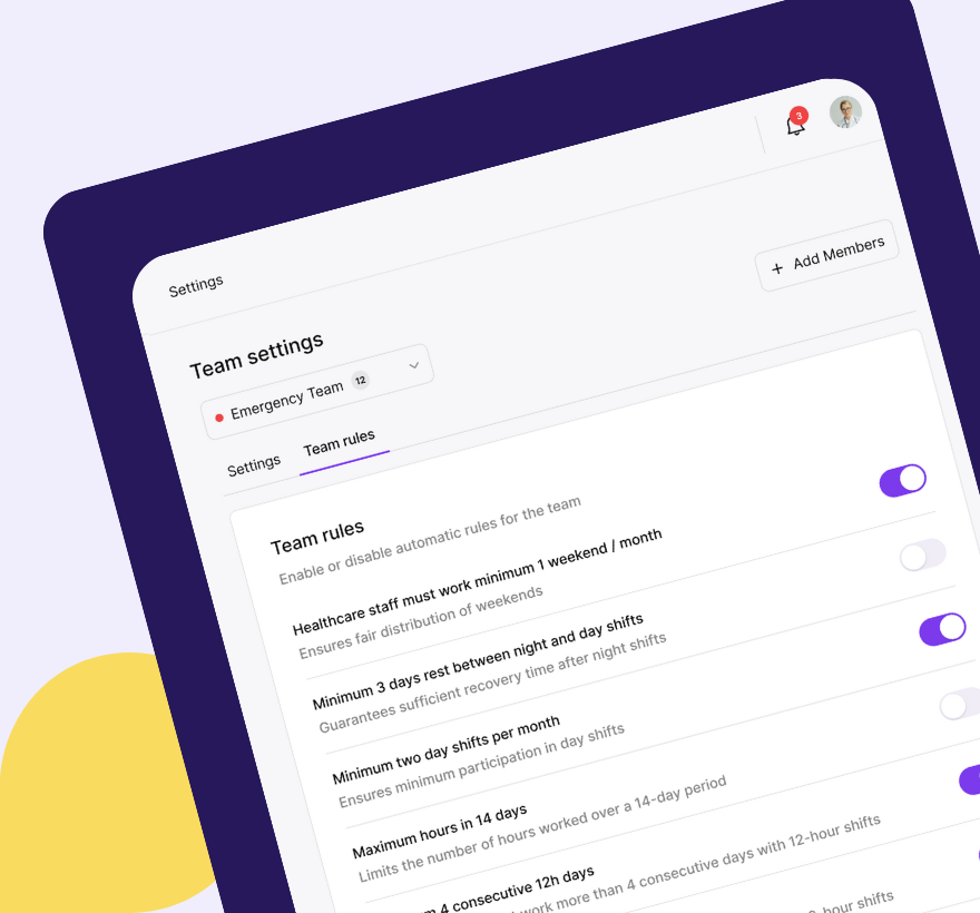Healio is a smart scheduling solution designed for healthcare teams. It helps create work schedules that respect legal and organizational requirements, while also taking into account each team member’s personal needs — fostering a healthier work–life balance for everyone.